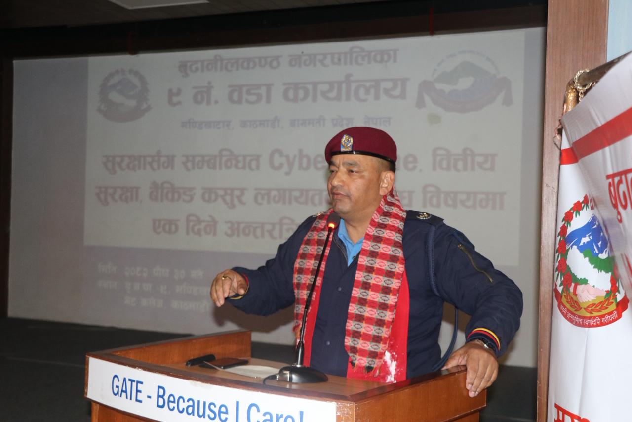 “हाम्रो प्रहरी कार्यक्रम” अन्तर्गत आज Cyber Crime, बित्तिय सुरक्षा, बैङकिङ्ग कसुर लगायत बिबिध सुरक्षा संग सम्बन्धित बिषयमा एकदिने प्रशिक्षण तथा अन्तर्क्रिया कार्यक्रम सम्पन्न भएको छ ।